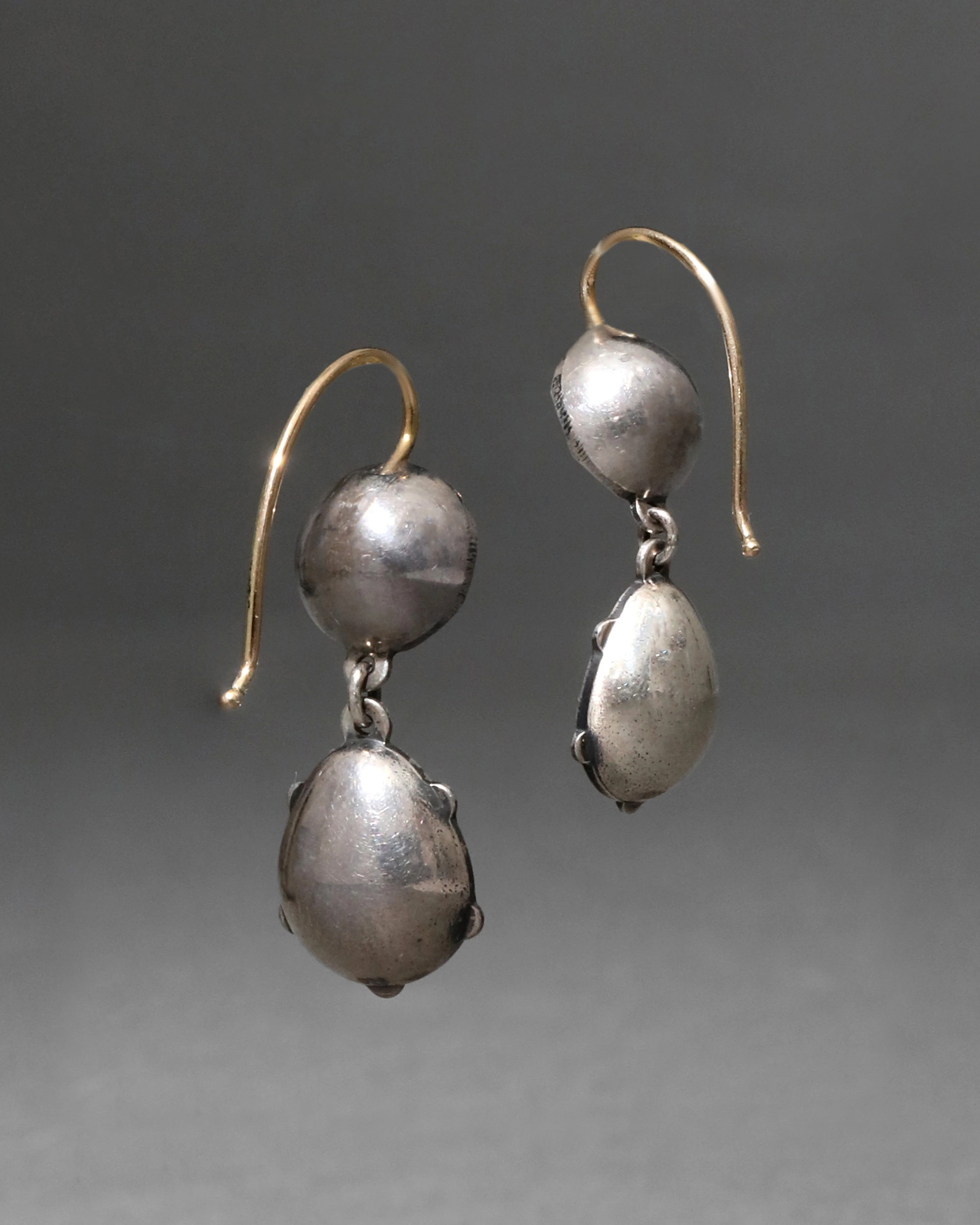 Round cut luminous crystals in sterling silver settings suspend decadent pear cut crystals, for a timeless earring style with 14k gold wire hooks. Sold as a pair.