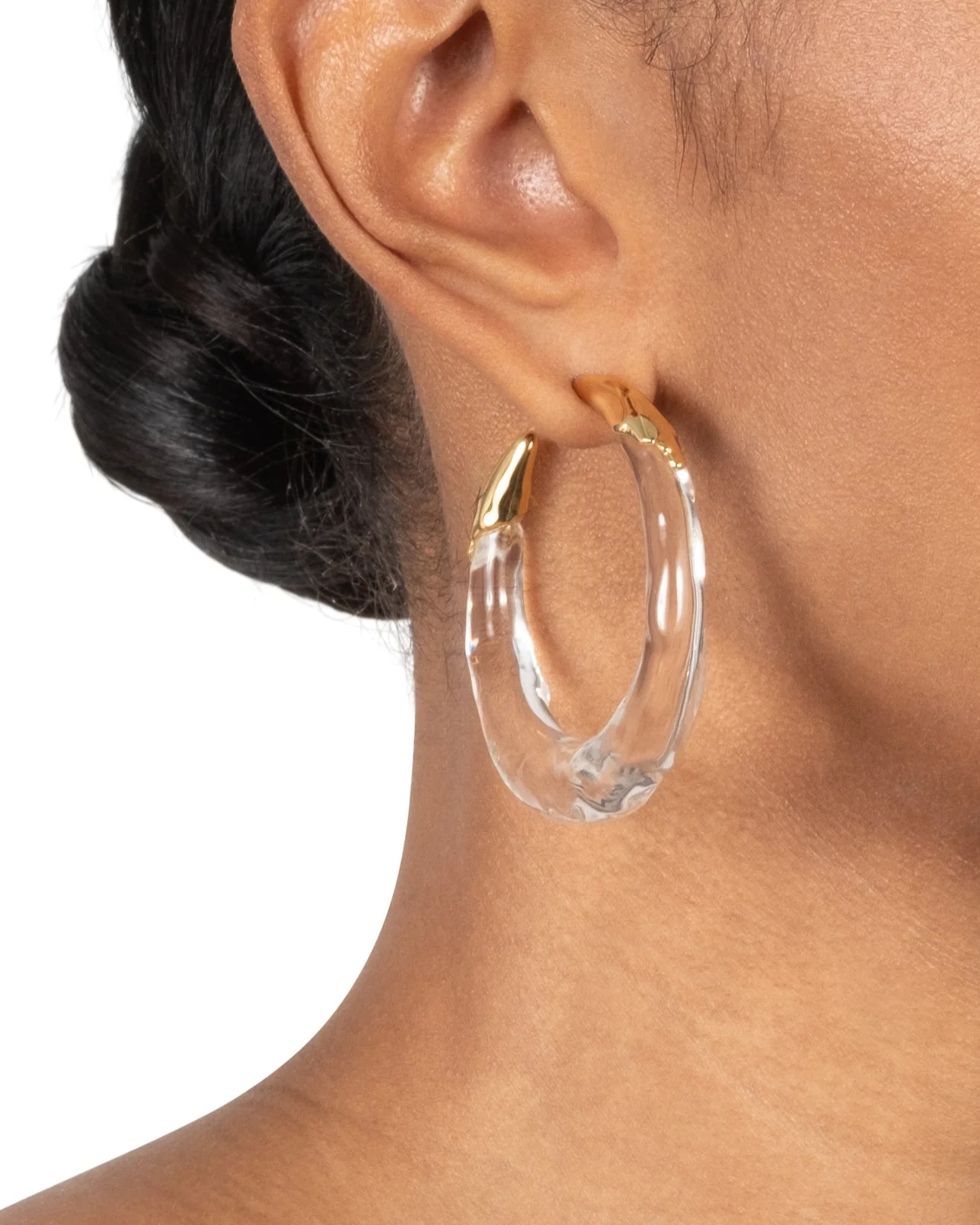 Who can wear these clear Lucite molten hoop earrings?