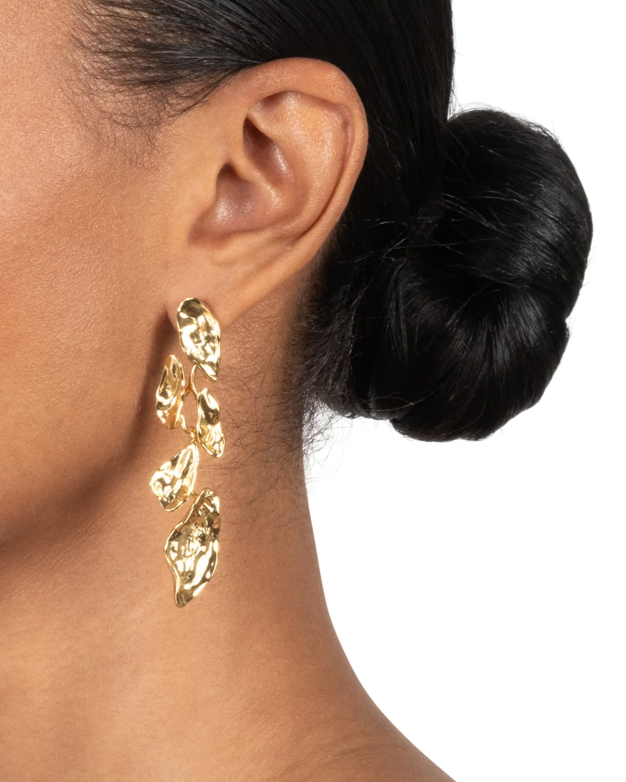 To clean your molten gold leaf drop earrings, gently wipe the surface with a soft cloth. For additional care instructions visit our FAQ page.